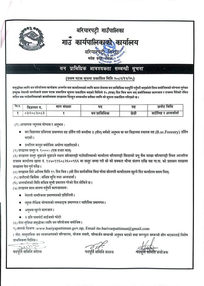 » गणक,बनप्राबिधिक, मनाेसामाजिक परामर्शकर्ता, अ.न.मि. र सडक मर्मत कामदार आवश्यकता सम्बन्धी सूचना ।